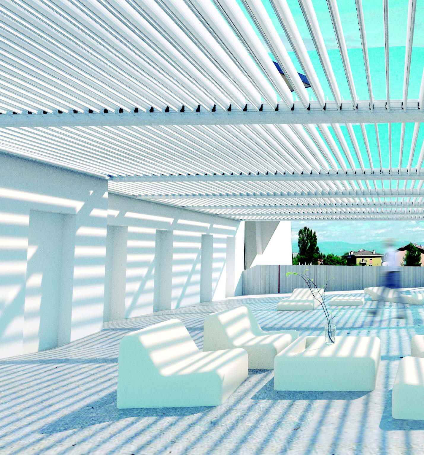 Estos techos pueden ser móviles y también fijos, corredizos, deslizantes y graduables. ¡Diferentes opciones para que elijas la que más se adapte a tu espacio!